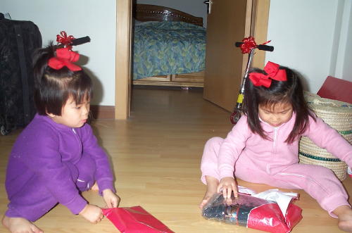 He brought the girls scooters, doctor kits, "imported" candy canes and baskets for Ester and Omies things.